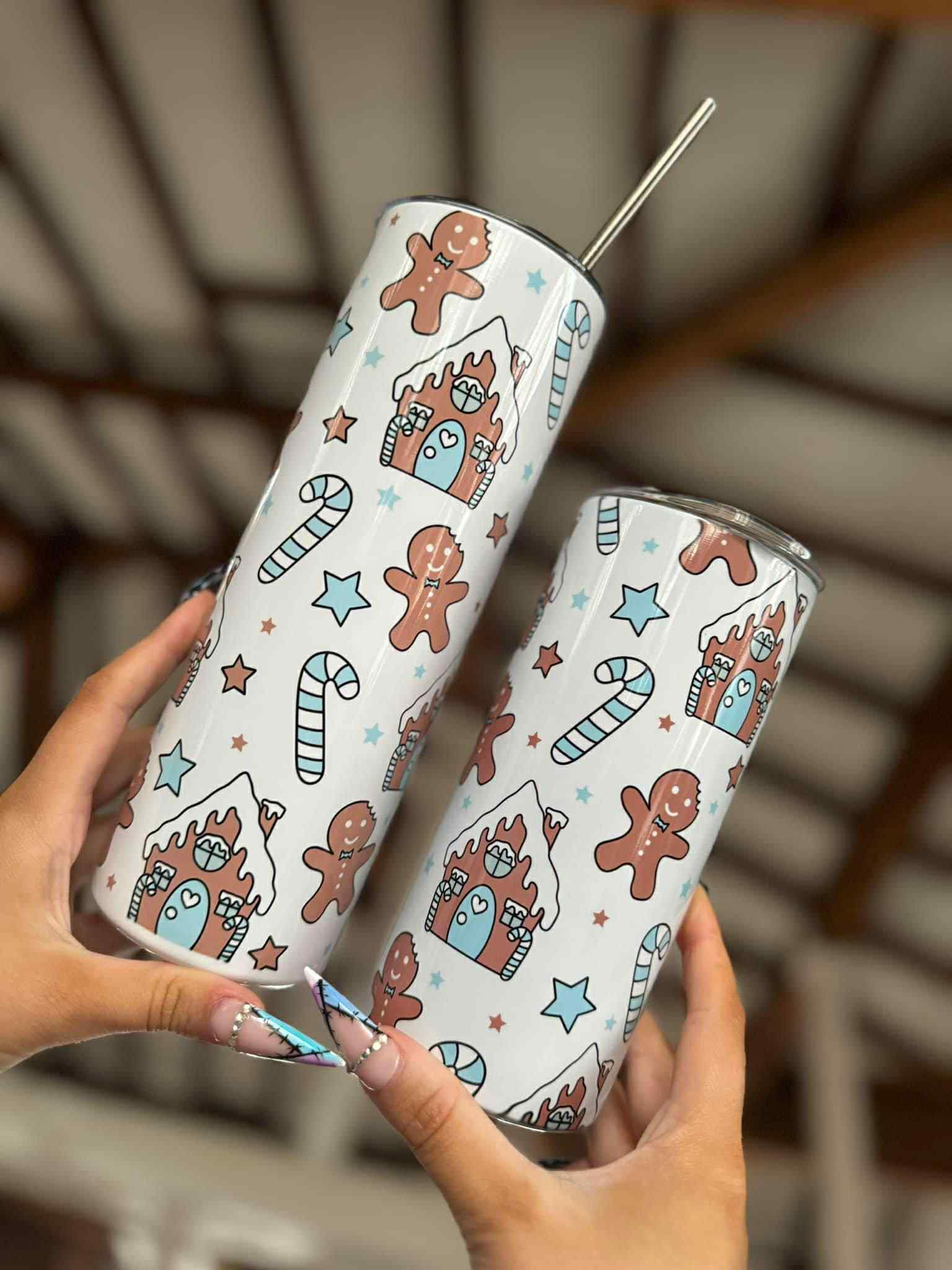 Double the holiday fun! This festive set features a 20oz tumbler and a 15oz tumbler, both adorned with adorable blue gingerbread designs. Perfect for coffee, cocoa, or any favorite seasonal drink, this set brings sweet holiday vibes to every sip.