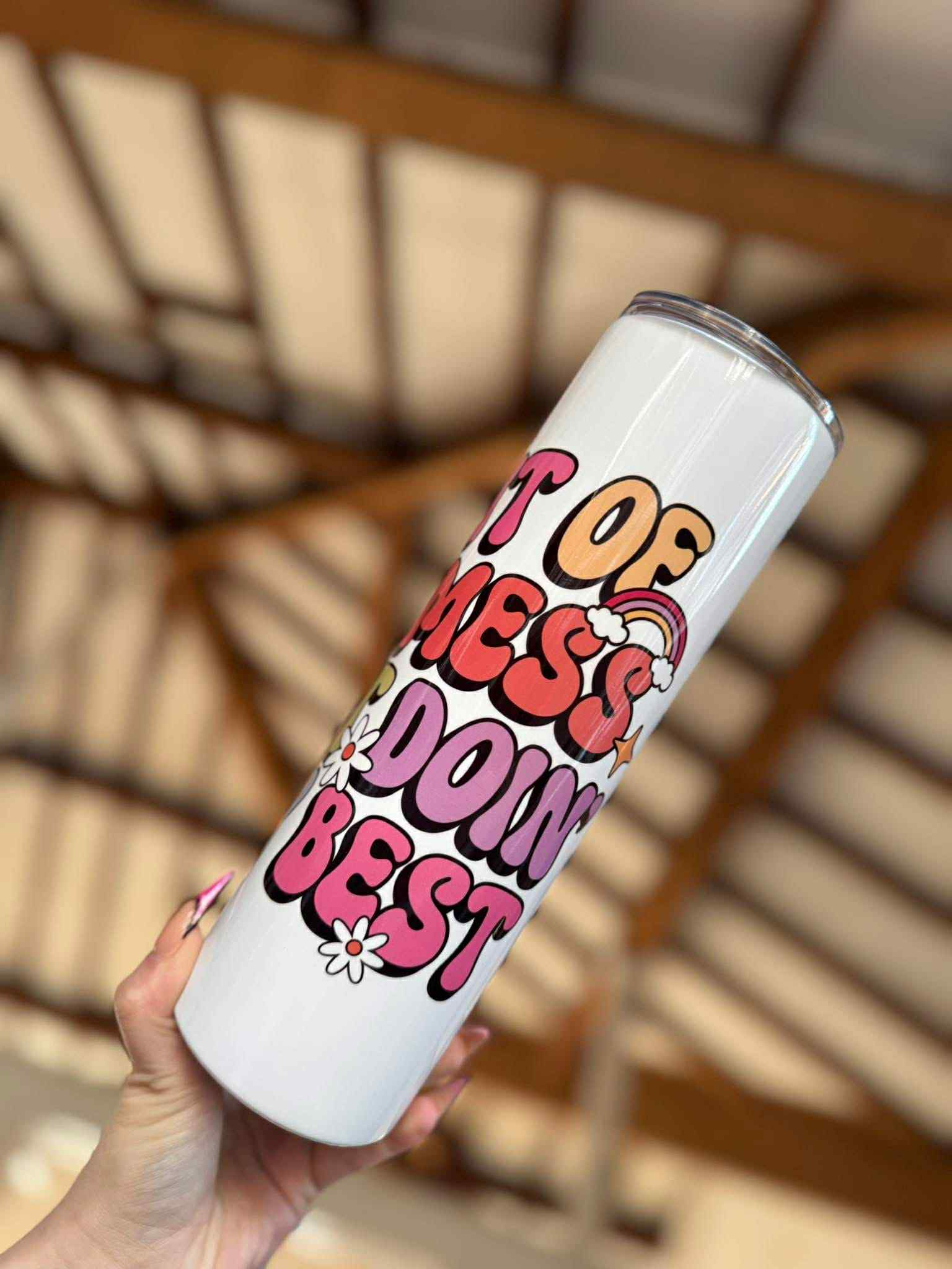 For the girlies who thrive on chaos and caffeine. 💁♀️ This tumbler is your daily reminder that even if life feels like a hot mess, you’re still showing up—and that deserves a big ol’ 30oz drink.