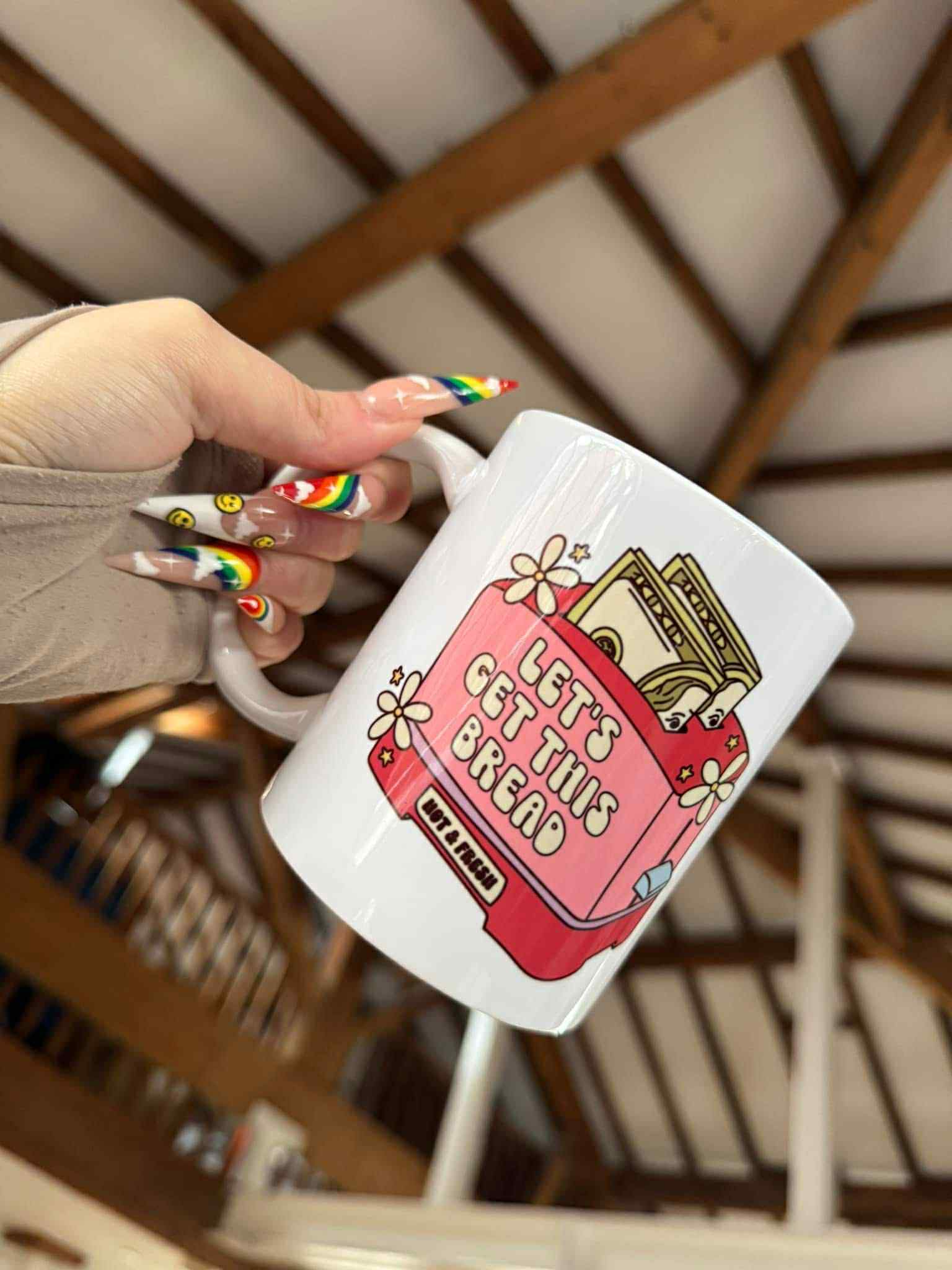 For the hustle, the grind, and all the mornings that require extra motivation! This 11oz ceramic mug is perfect for sipping coffee, tea, or hot chocolate while you tackle your goals and actually get that bread. A cheeky gift for go-getters, dream-chasers, and anyone who needs a daily dose of caffeine and inspiration.
