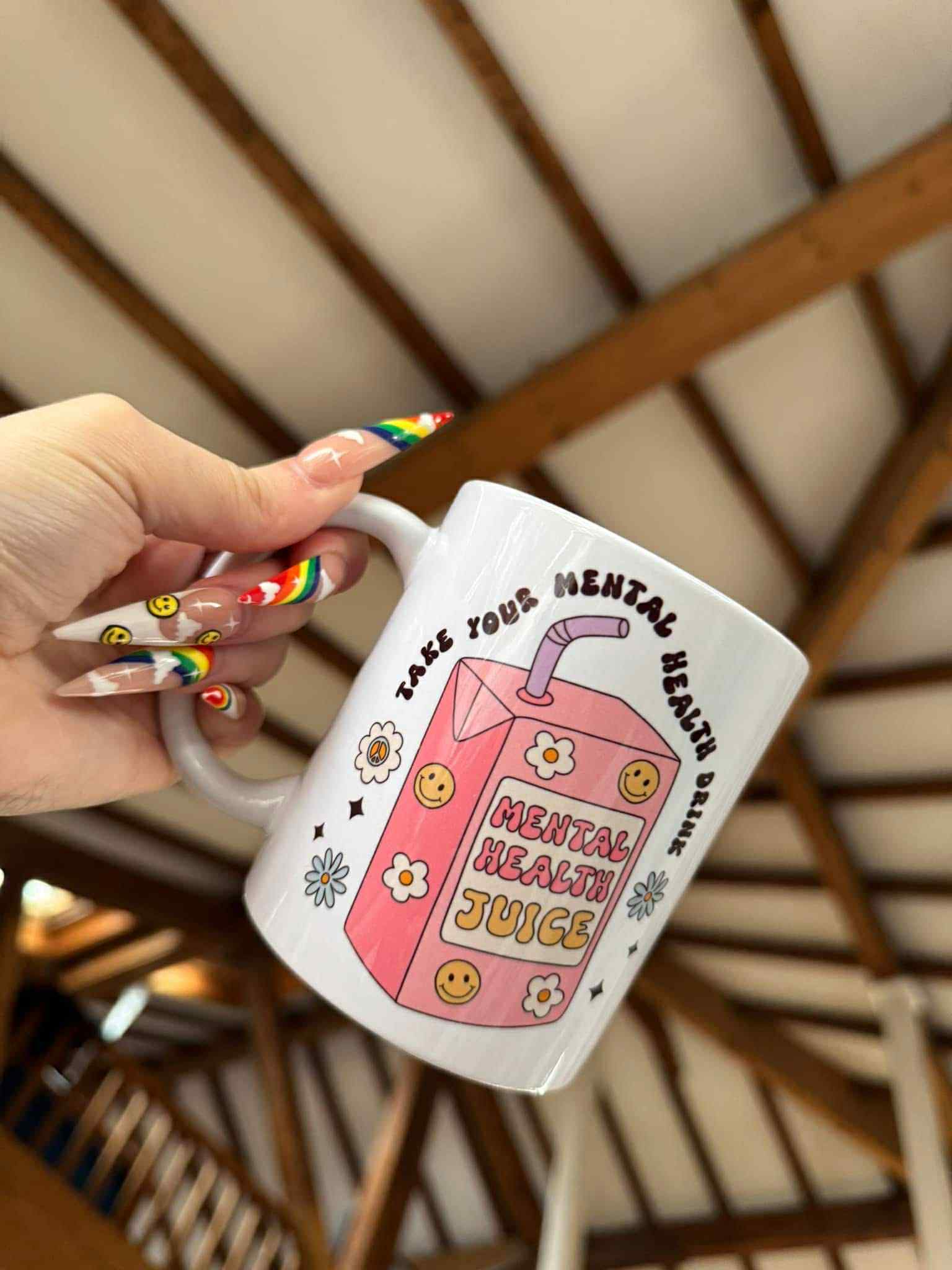 Because some days, coffee isn’t enough… you need your mental health juice! This 11oz ceramic mug is perfect for sipping coffee, tea, hot chocolate, or whatever keeps you sane while tackling life’s ups and downs. A cheeky, relatable gift for anyone who prioritizes self-care (with a dash of humour).